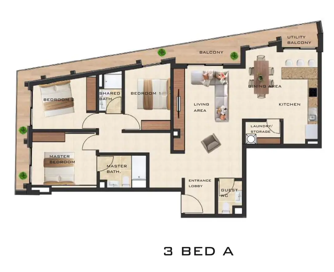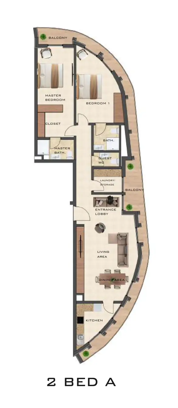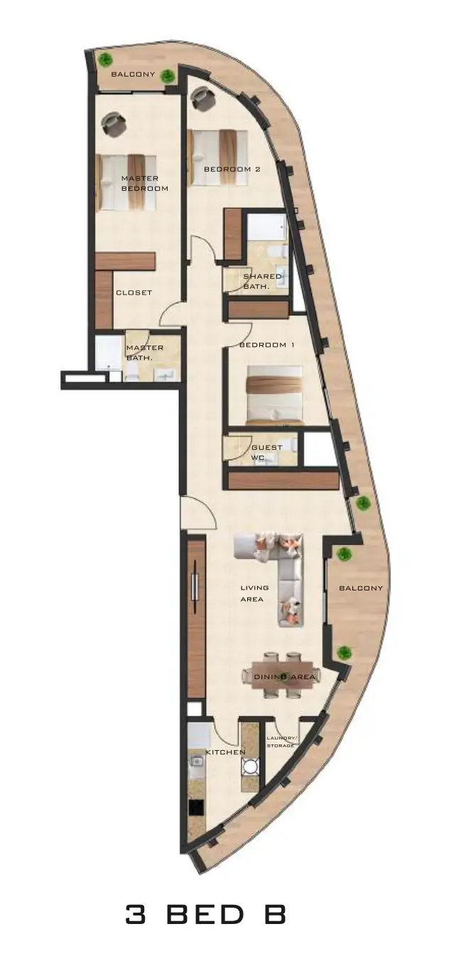 Our apartments range from 40 sqm to 160 sqm and are outfitted to serve as your personal sanctuary. In this clean and contemporary space; convenience, and style are all well balanced. Our units have wrap-around balconies accessible from both living areas and bedrooms for some units. Our units are naturally lit and ventilated closed kitchens with balcony access for 2 & 3 bedroom apartment units.